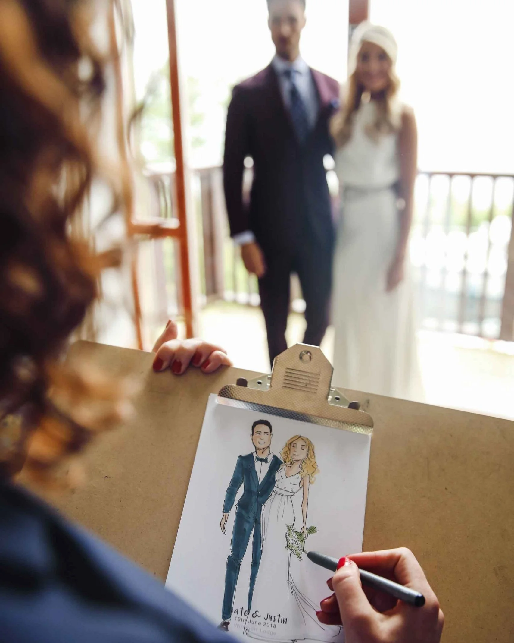 “Booking Linda was easily the best decision we made for our wedding! Her work is absolutely fabulous and everyone was in awe watching her create her illustrations. She captured everyone’s likeness and personality so well, and people are still raving about her! We loved getting drawn by her on the day and looking at all our guests’ drawings too. She is worth every penny and if anyone is on the fence about booking her, I’d say go for it, you won’t regret it!”