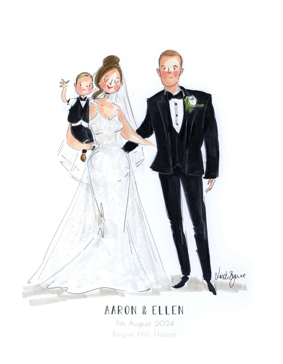 Absolutely—it’s one of my favourite parts of the day! For the Classic Package I will draw them during the allocated time on the day. For full-day bookings, I can illustrate the bridal couple on the day or from photos afterwards.